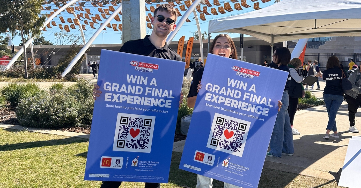 Thank you to our Mission Partner McDonald’s and Fremantle Football Club for your continued support. All monies raised from the raffle will help us to keep WA families with sick kids together and supported when they need it most.